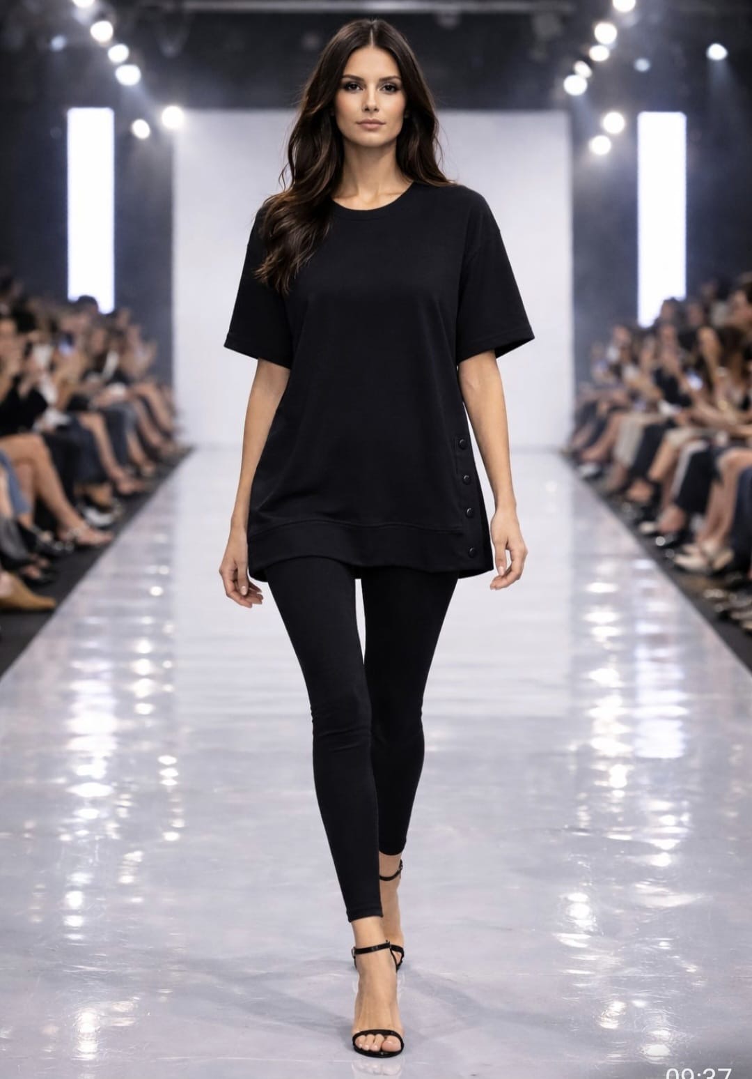 Etek kısmındaki çıtçıt detayı, ürüne hem fonksiyonel hem de farklı bir stil kazandırır. İsterseniz kapalı şekilde klasik bir tunik olarak kullanabilir, isterseniz çıtçıtları açarak daha özgür ve dinamik bir görünüm elde edebilirsiniz.